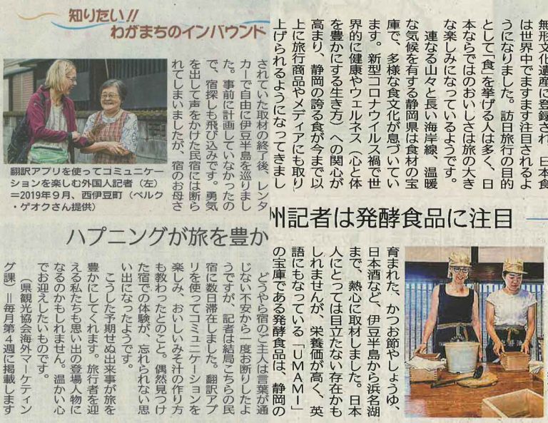 Anlässlich der Aufhebung der Einreisebeschränkungen im Oktober 22 erscheint in der Shizuoka Shimbun ein Bericht über unsere Reise durch die japanische Provinz
