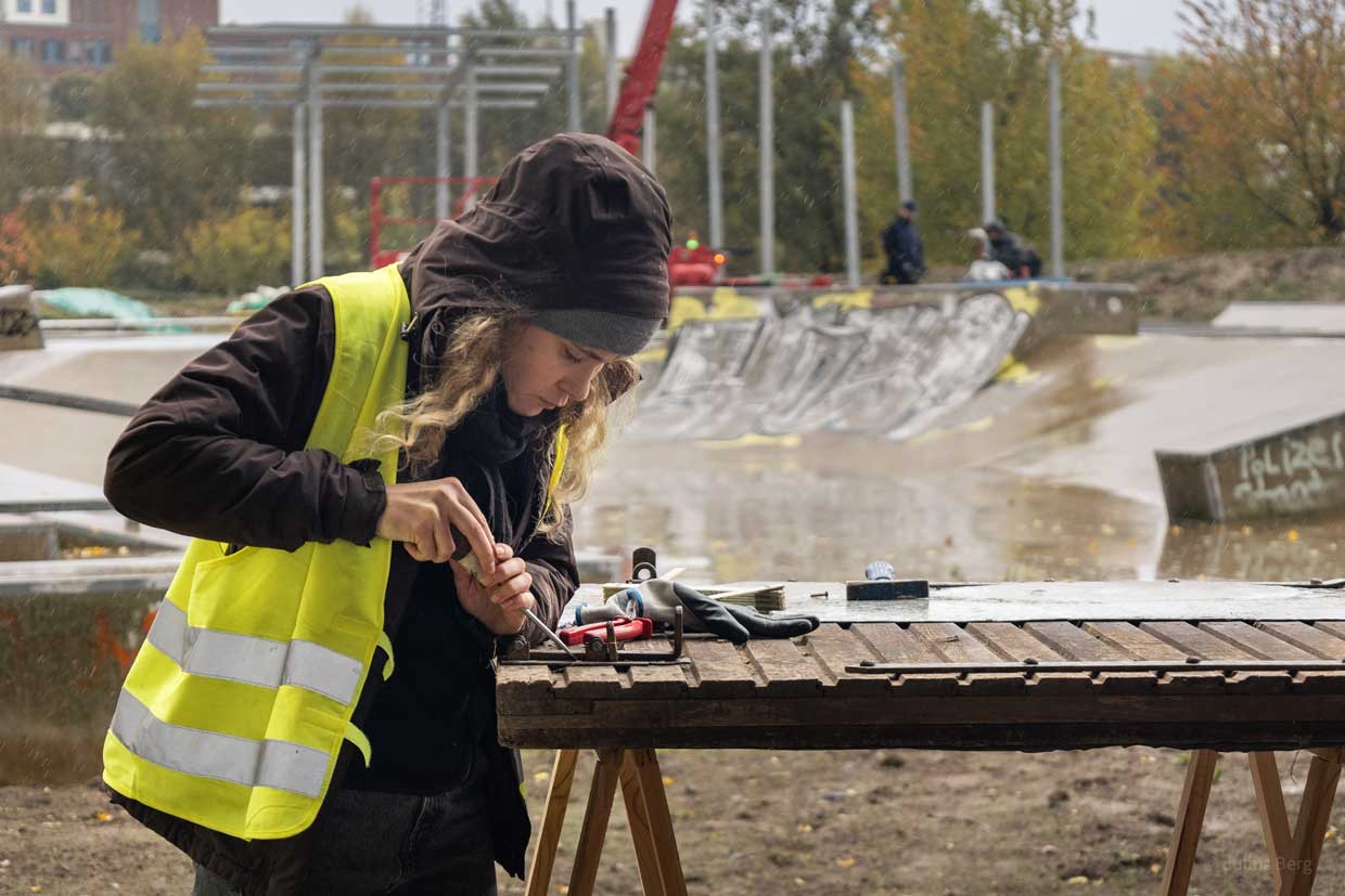 Alle hätten sich gegenseitig helfen und ihr Wissen teilen können, was die Baustelle zu einem echten Ort des Lernens und der Begegnung gemacht habe. Pro Workshop haben sie vier Tage und drei Nächte im Haus der Jugend in Neuss verbracht, dort gelebt und gearbeitet. So sei eine nachhaltige, soziale Verbindung entstanden – ein Netzwerk aus purer Eigeninitiative und Interesse, ganz ohne Uni-Credits oder Notendruck, schwärmt die Architektin.