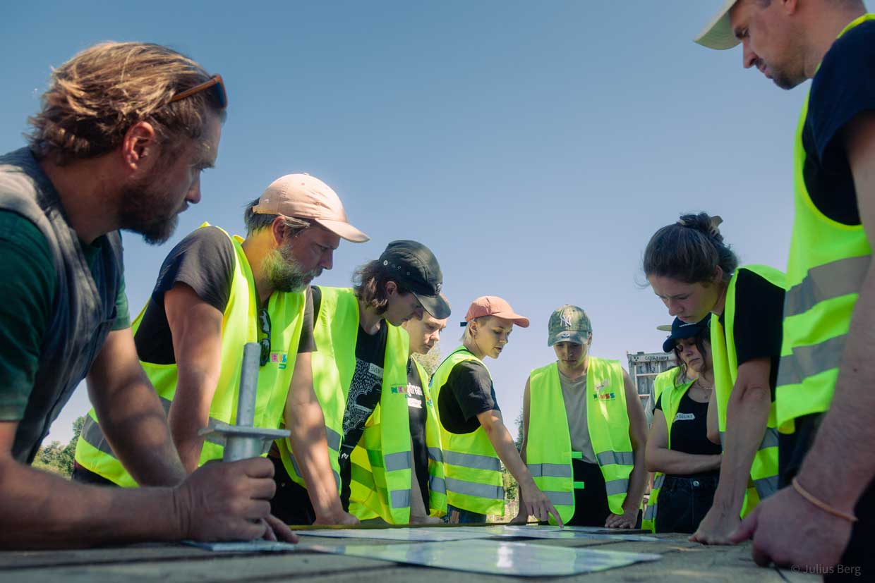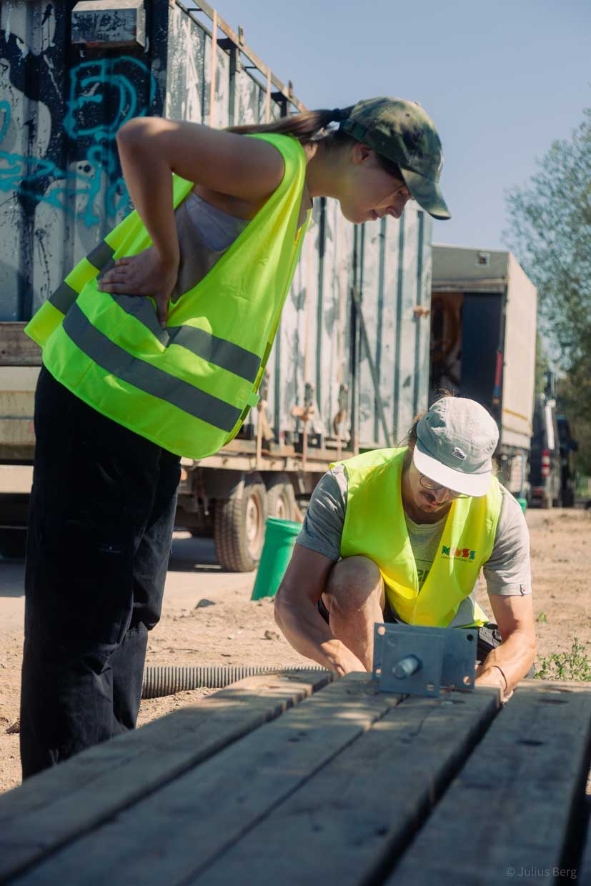 Alle hätten sich gegenseitig helfen und ihr Wissen teilen können, was die Baustelle zu einem echten Ort des Lernens und der Begegnung gemacht habe. Pro Workshop haben sie vier Tage und drei Nächte im Haus der Jugend in Neuss verbracht, dort gelebt und gearbeitet. So sei eine nachhaltige, soziale Verbindung entstanden – ein Netzwerk aus purer Eigeninitiative und Interesse, ganz ohne Uni-Credits oder Notendruck, schwärmt die Architektin.