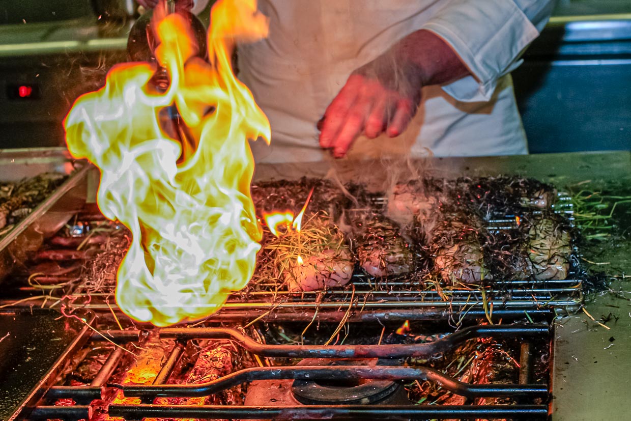 Sternekoch Sebastian Frank aus dem Horvarth in Berlin bereitet Stör im Heumantel zu / © Foto: Georg Berg